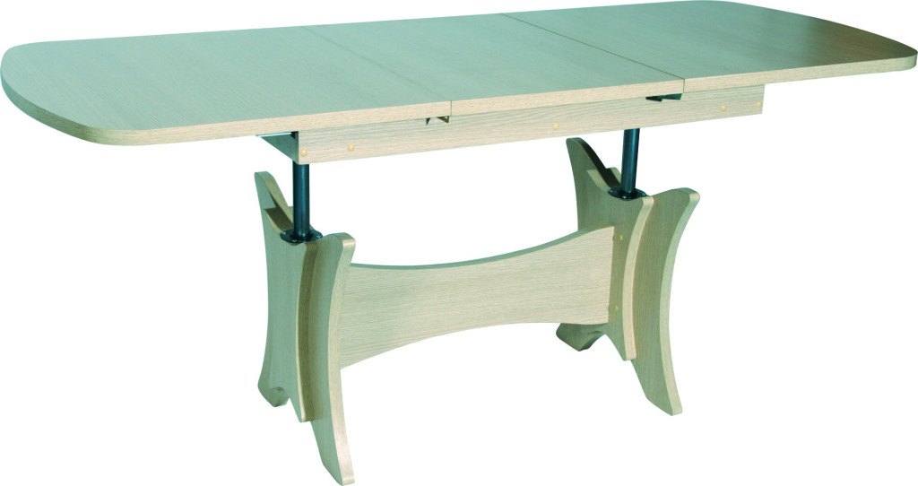 Emelhető és nagyobbítható kihúzható dohányzóasztal íves asztallappal