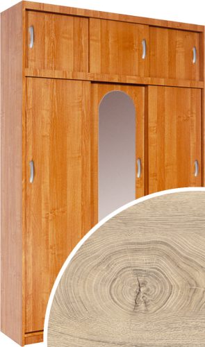 3-ajtós akasztós polcos fiókos gardróbszekrény tolóajtóval magasítóval és tükörrel