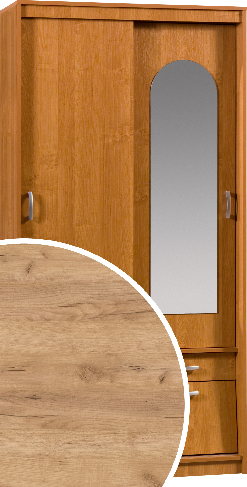 2-ajtós akasztós polcos fiókos gardróbszekrény tolóajtóval tükörrel