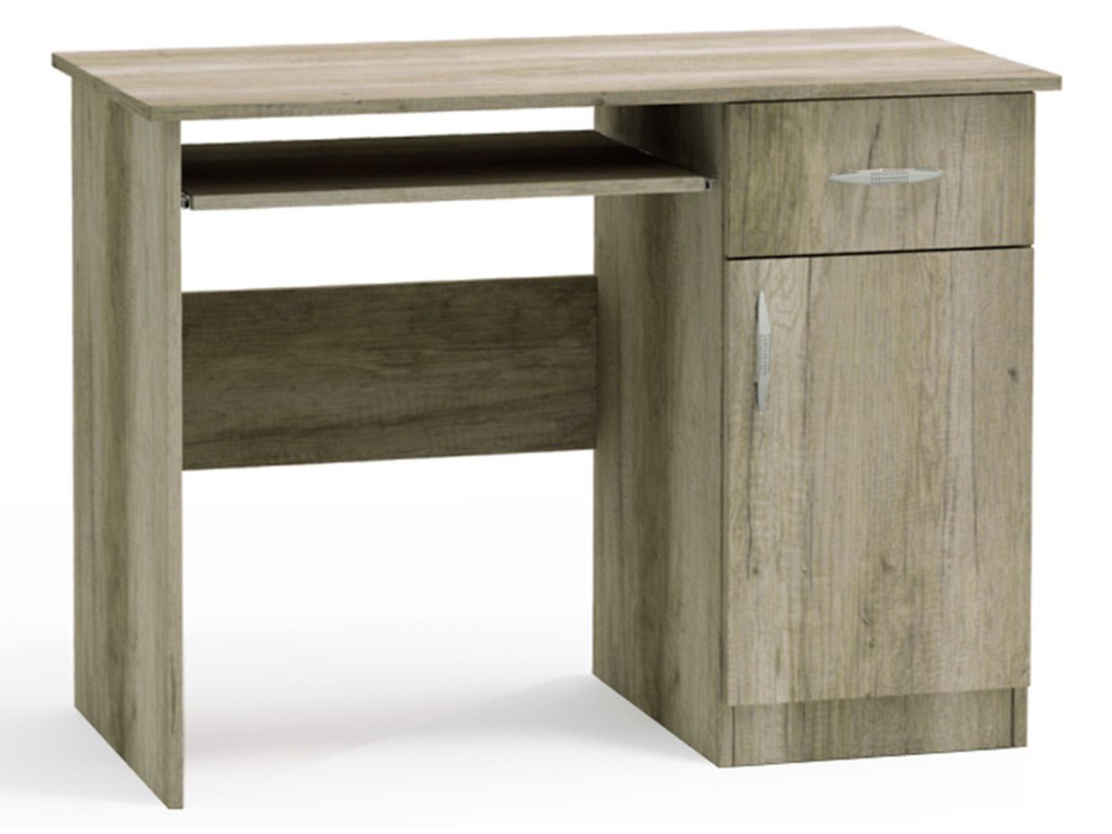 Fiókos és ajtós íróasztal polccal, billentyűzettartóval.