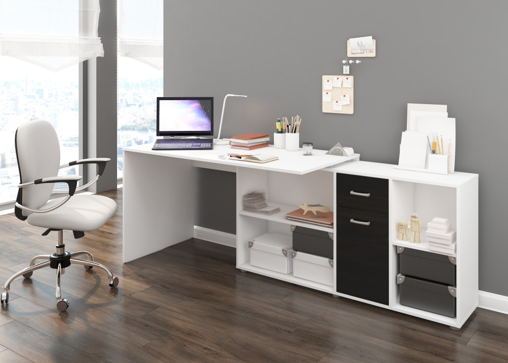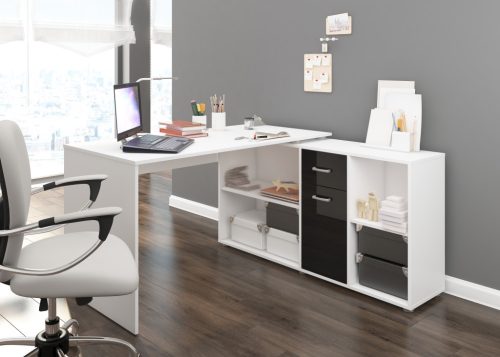 Beat P íróasztal kombináció jobbos - Fehér - Fényes fekete