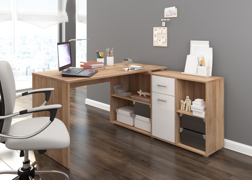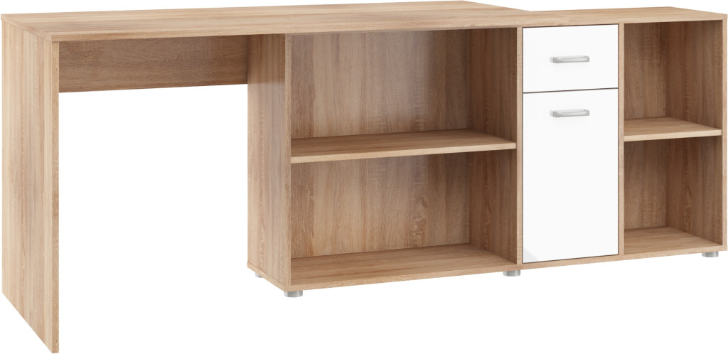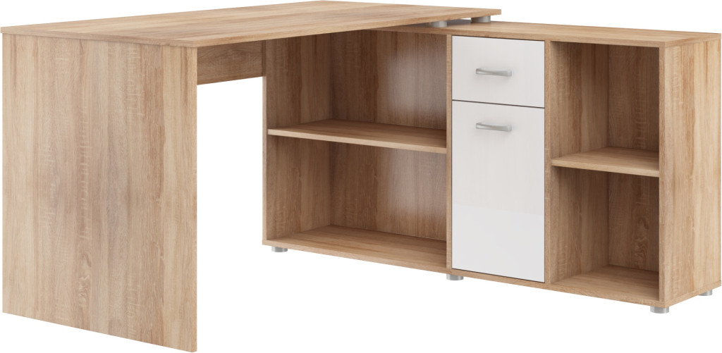 Beat P íróasztal kombináció jobbos - Világos Sonoma tölgy - Fényes fehér