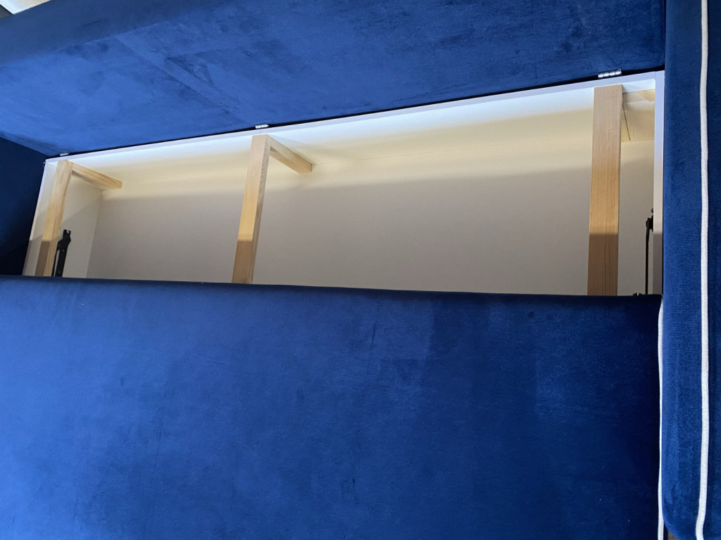 Vékony karfás, fekhellyé nyitható kanapéágy, ágyneműtartóval