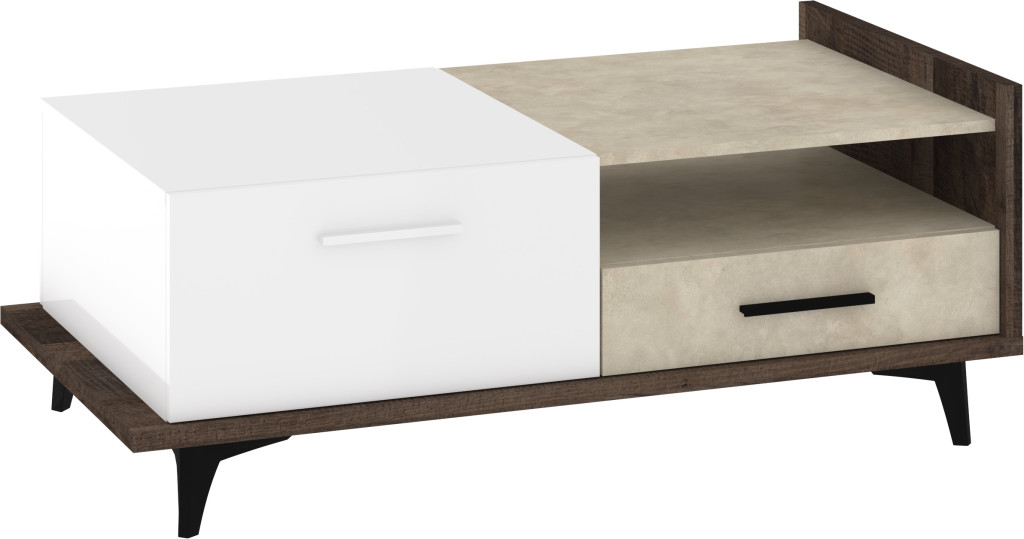 Box dohányzóasztal 2 ajtó 2 fiók - Grange tölgy - Fehér - Granada mandula