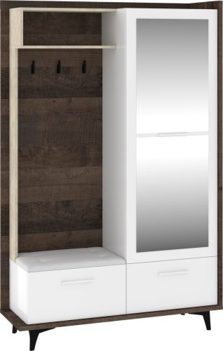 Előszobafal fogasokkal vállfatartós akasztós szekrénnyel tükörrel lenyíló ajtókkal