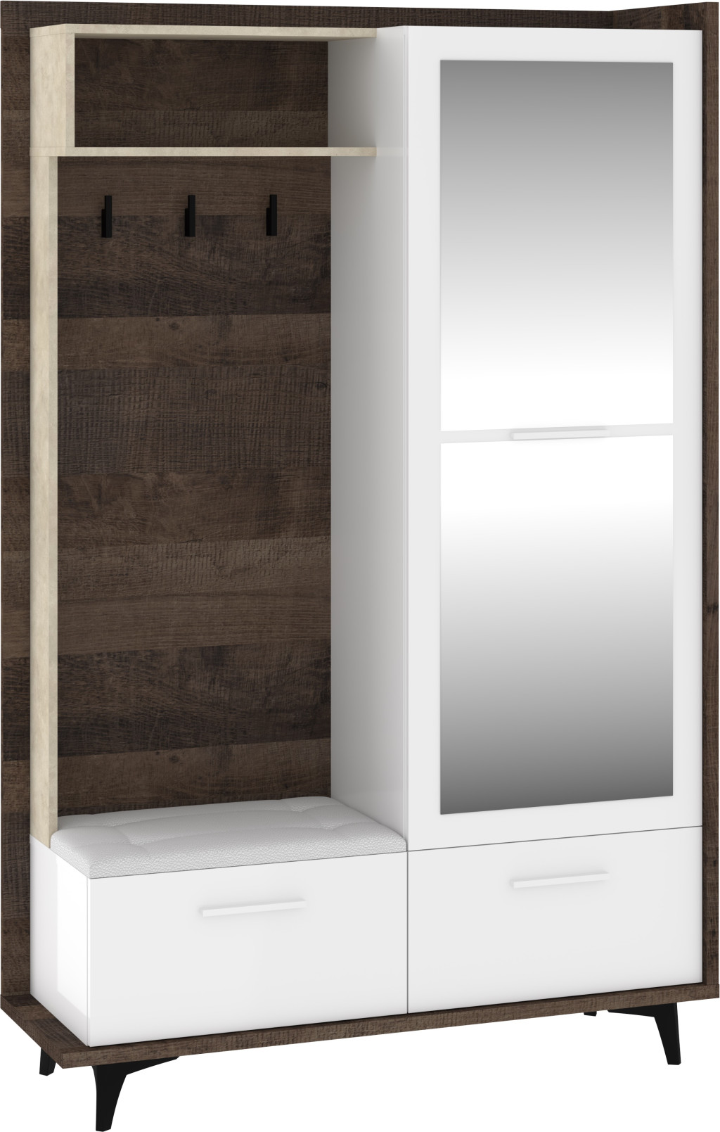 Box tükrös előszoba szekrény 3 ajtó - Grange tölgy - Fehér - Granada mandula - Fehér huzat