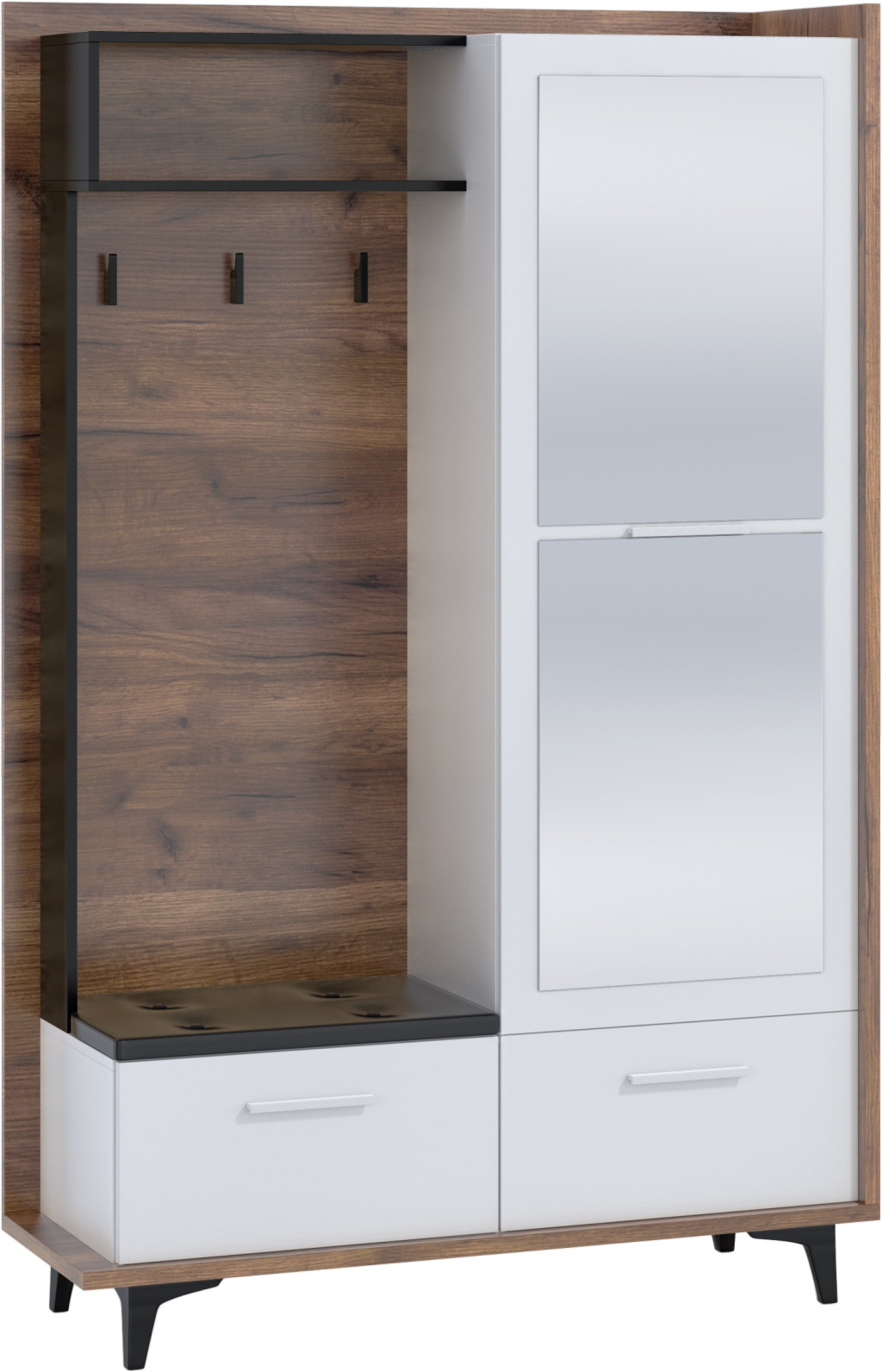 Box tükrös előszoba szekrény 3 ajtó - Tobacco tölgy - Fehér - Fekete