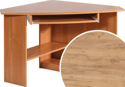 Sarok számítógépasztal billentyűzattartóval polccal és számítógépház tartóval, balos