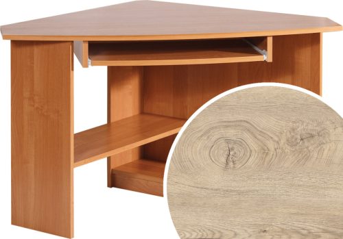 Sarok számítógépasztal billentyűzattartóval polccal és számítógépház tartóval, balos