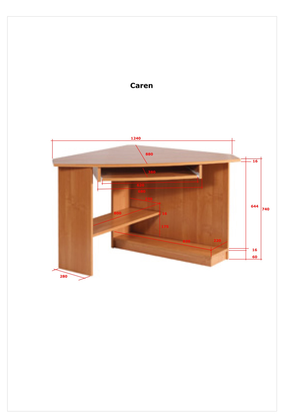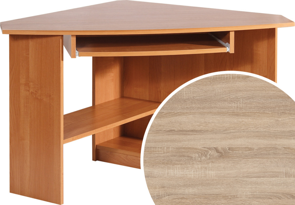 Sarok számítógépasztal billentyűzattartóval polccal és számítógépház tartóval, balos