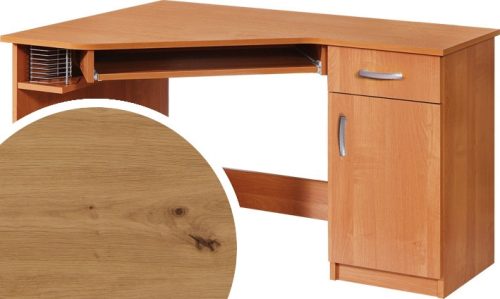 Sarok számítógépasztal ajtóval fiókkal billentyűzettartóval polccal és számítógép tartóval, jobbos