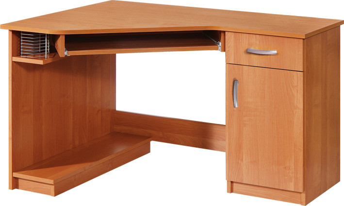 Sarok számítógépasztal ajtóval fiókkal billentyűzettartóval polccal és számítógép tartóval, jobbos
