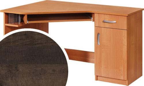 Sarok számítógépasztal ajtóval fiókkal billentyűzettartóval polccal és számítógép tartóval, jobbos