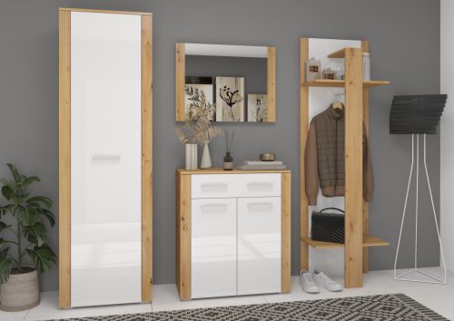 Cezar előszoba bútor szett - Artisan tölgy - Fényes fehér