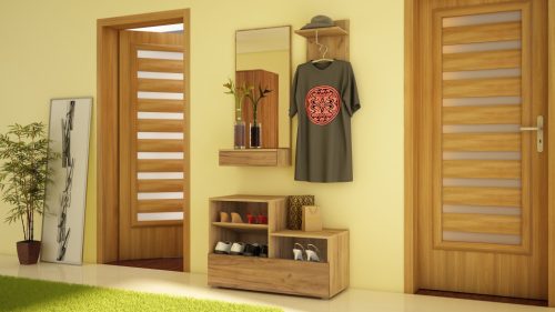Előszobafal vállfatartóval fiókos tükörrel cipőtartó komóddal