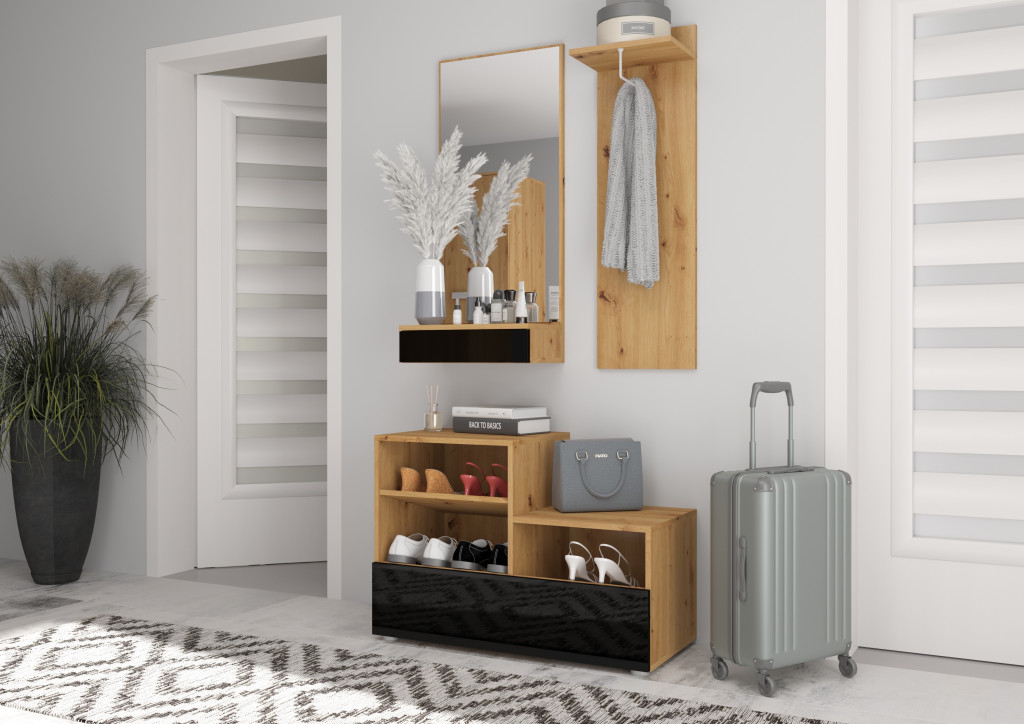City előszoba bútor szett - Artisan tölgy - Fényes fekete