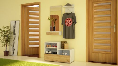 Előszobafal vállfatartóval fiókos tükörrel cipőtartó komóddal