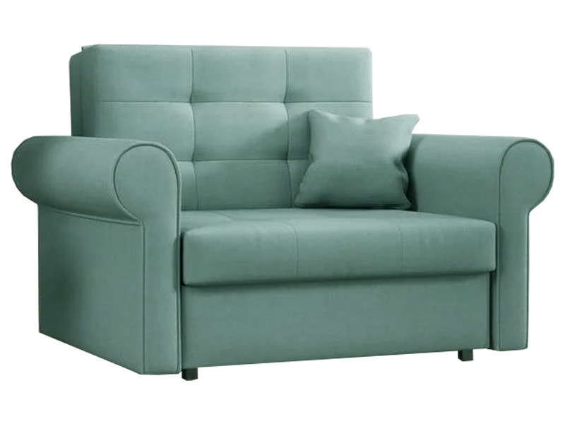 Egyszemélyes ággyá nyitható fotelágy, ágyneműtartóval, steppelt felületekkel, díszpárnával, karfákkal.