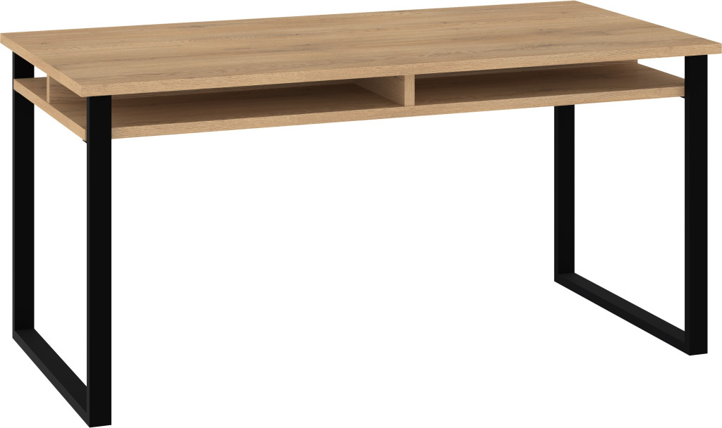 Étkezőasztalnak és íróasztalnak is használható fémlábas asztal asztallap alatti polcokkal szögletes asztallappal