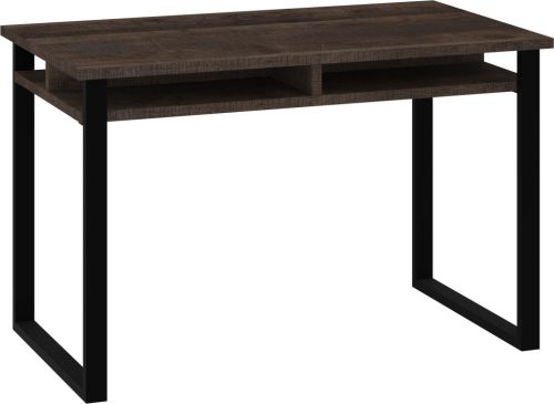Étkezőasztalnak és íróasztalnak is használható fémlábas asztal asztallap alatti polcokkal szögletes asztallappal