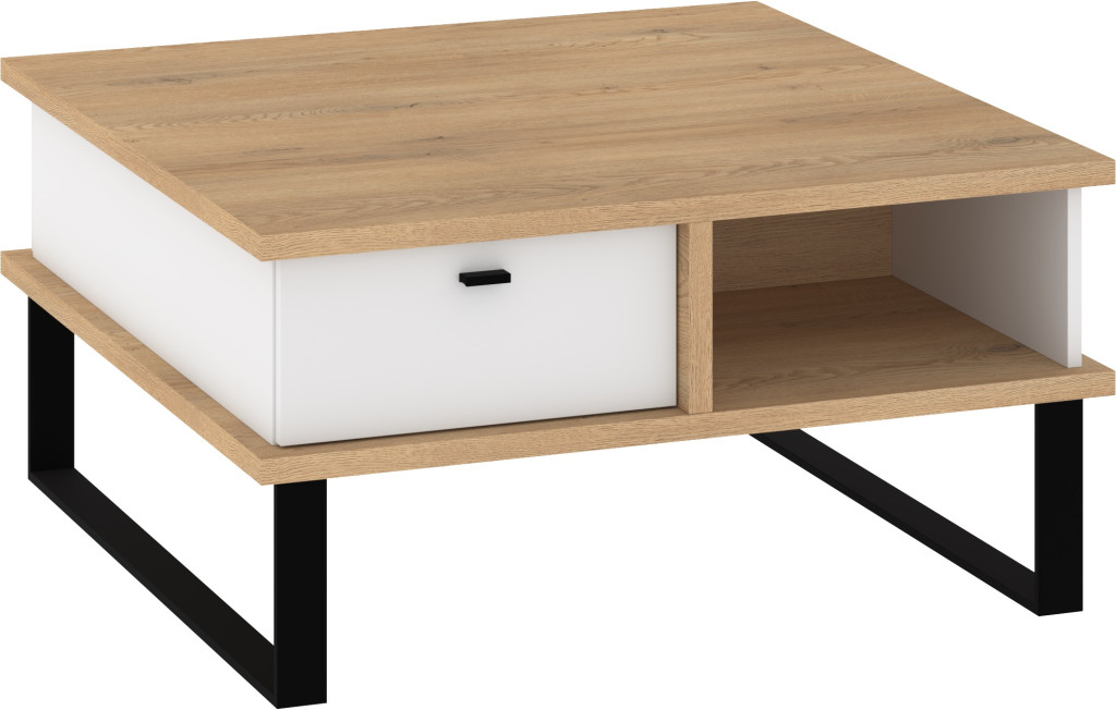 Cross dohányzóasztal 2 fiók négyzet alakú - Cremona tölgy - Fehér