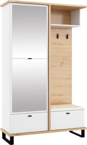 Cross előszoba bútor tükörrel - Artisan tölgy - Fehér - Bézs huzat