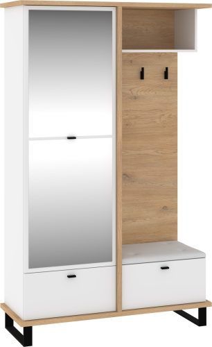 Cross előszoba bútor tükörrel - Cremona tölgy - Fehér - Fehér huzat