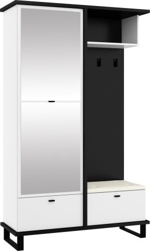 Cross előszoba bútor tükörrel - Fekete - Fehér - Bézs huzat