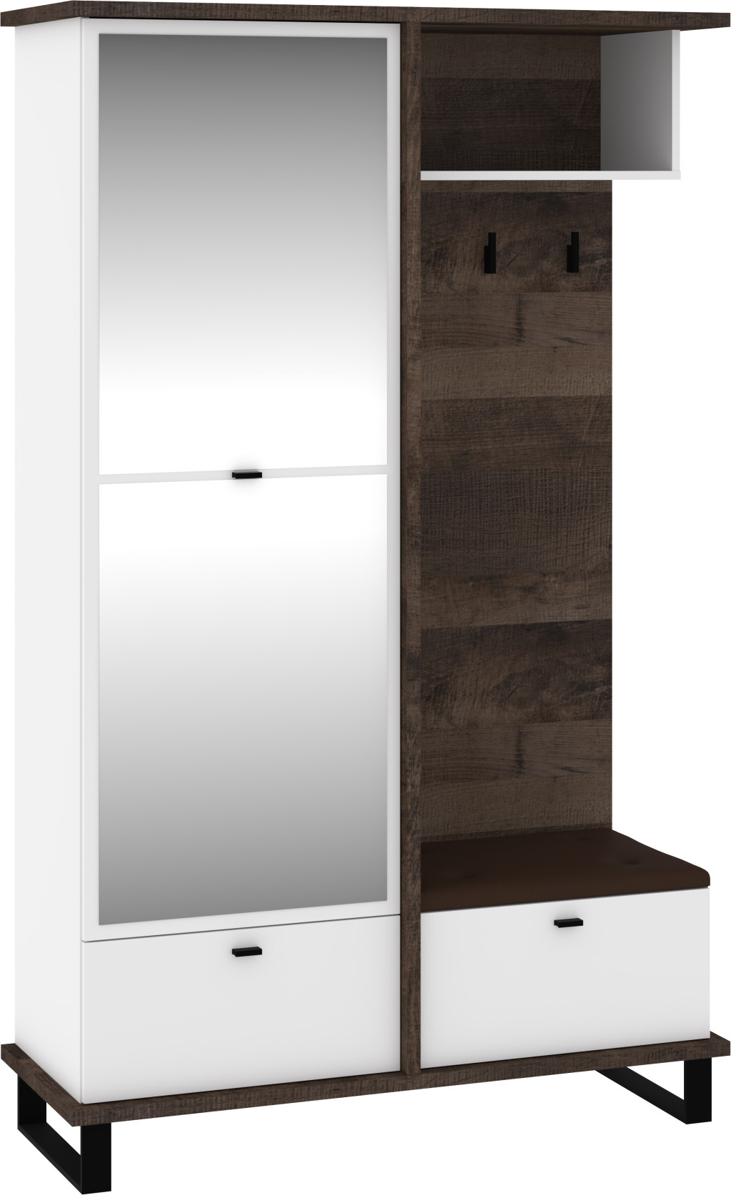 Cross előszoba bútor tükörrel - Grange tölgy - Fehér - Barna huzat