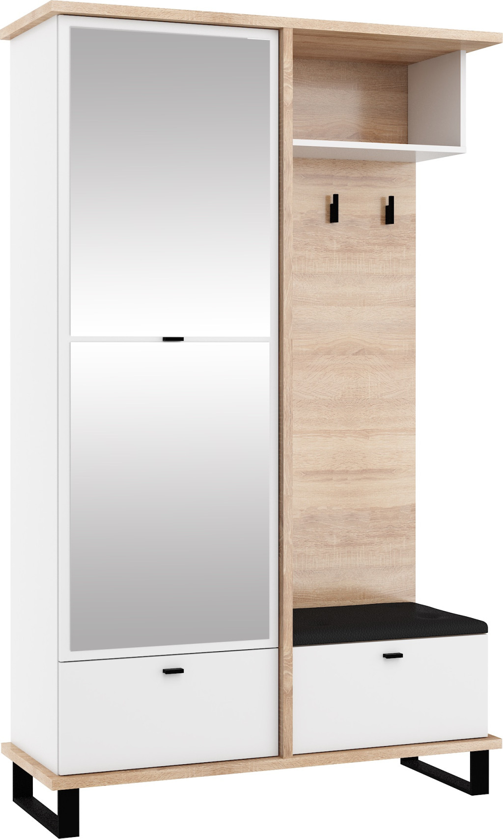Cross előszoba bútor tükörrel - Világos Sonoma tölgy - Fehér - Fekete huzat