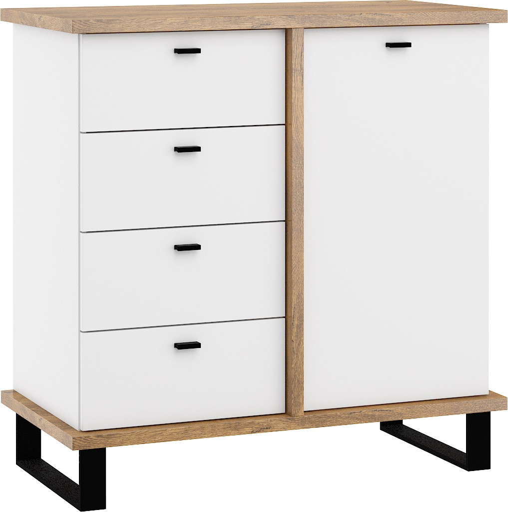 Cross komód 1 ajtó 4 fiók - Burgundy tölgy - Fehér