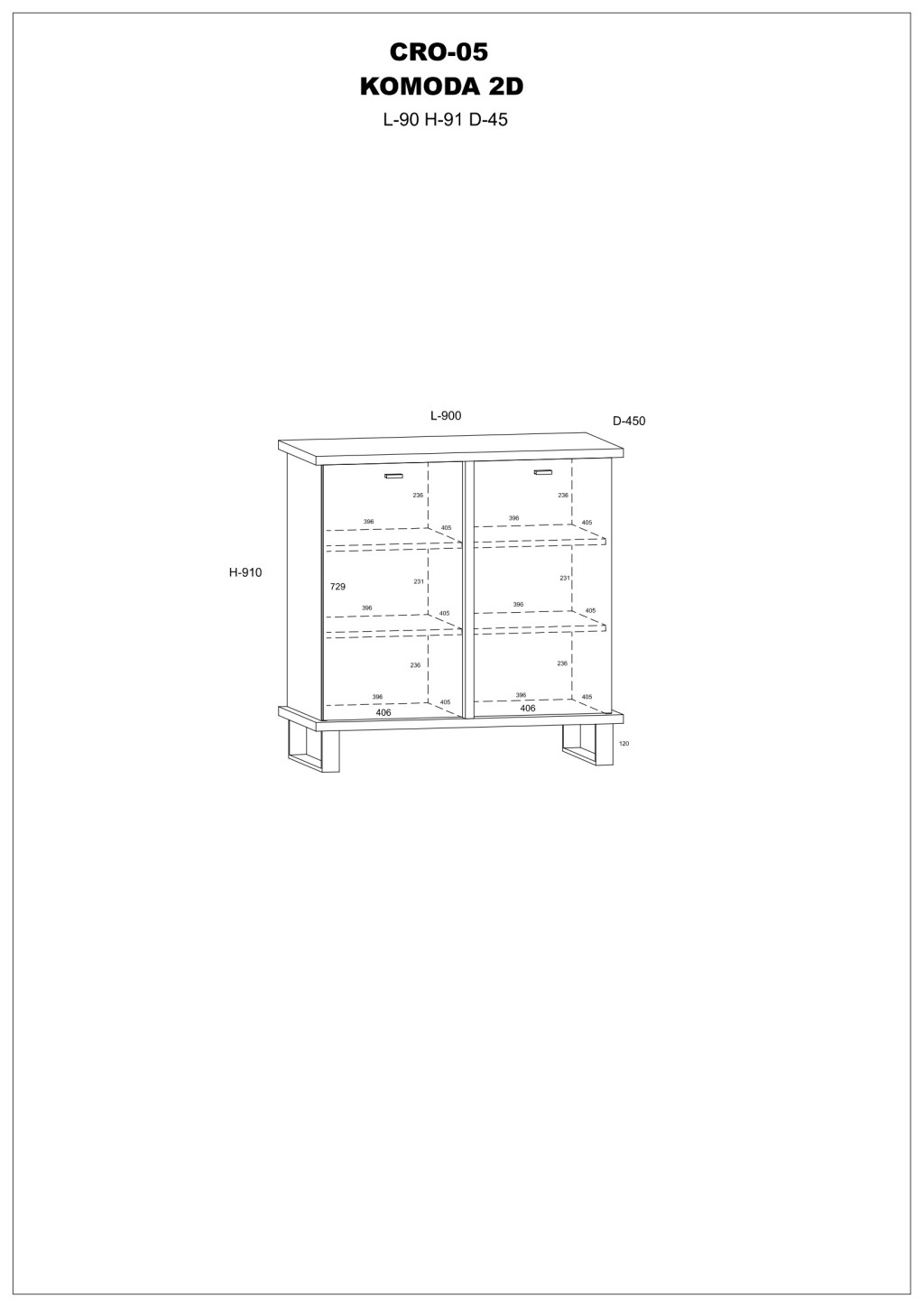 Komód 2 ajtóval polcokkal