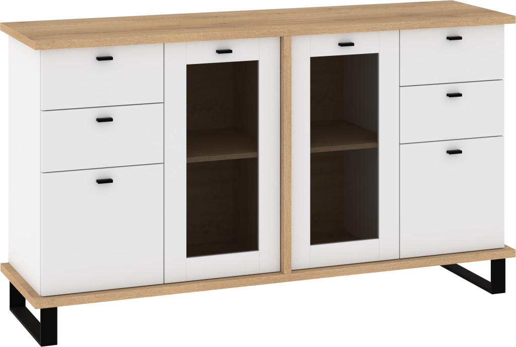 Cross vitrines komód 2 üvegajtó 4 fiók - Cremona tölgy - Fehér