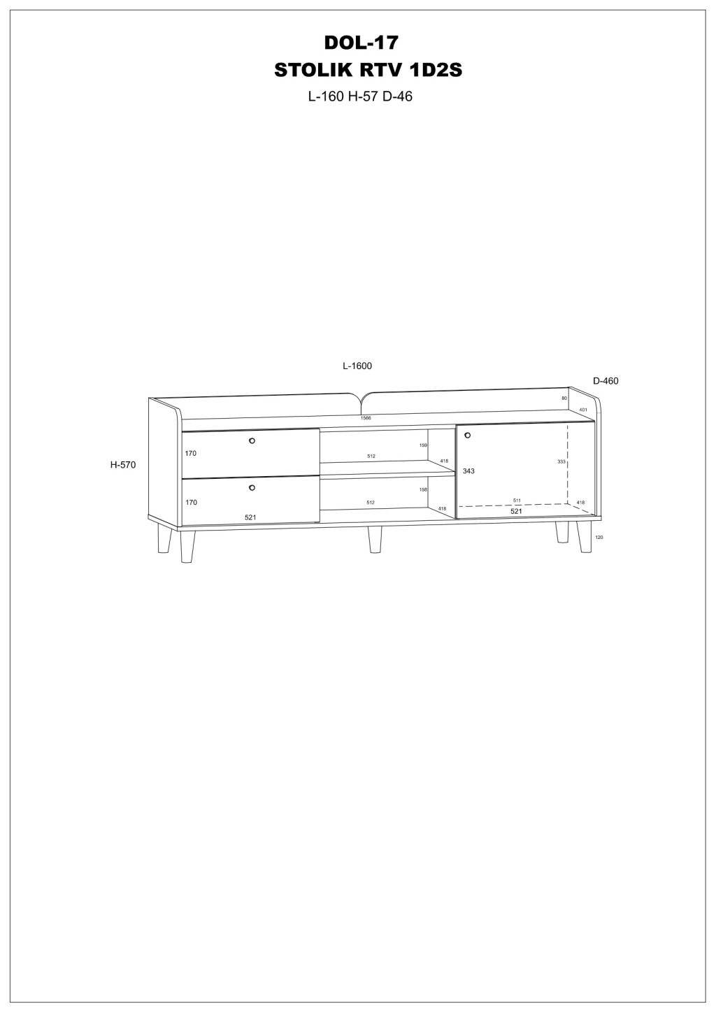 TV-állvány 1 ajtóval 2 fiókkal nyitott polcokkal