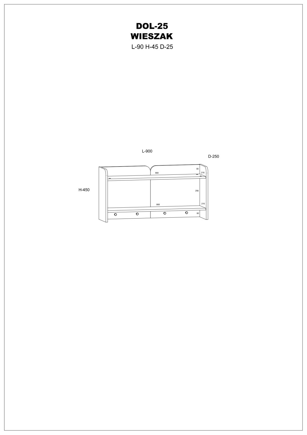 Falra szerelhető előszobafal akasztókkal polcokkal