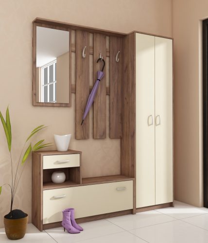 Előszoba bútor szett 1 - Tobacco tölgy - Krém