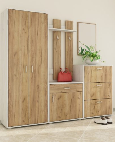 Előszoba bútor szett 3 - Fehér tölgy - Arany tölgy