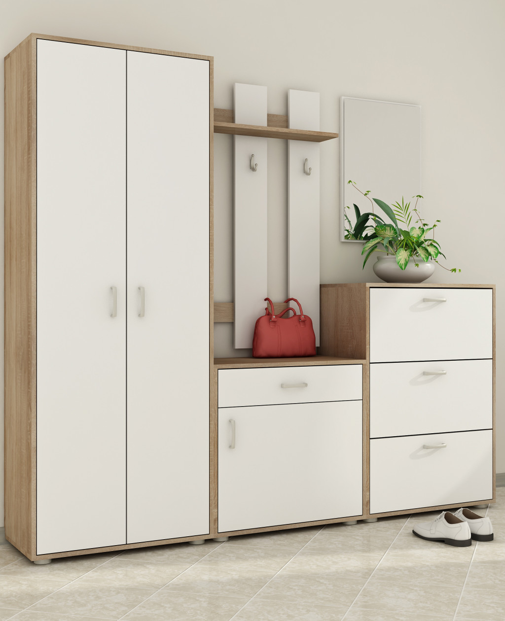 Előszoba bútor szett 3 - Világos Sonoma tölgy - Fehér