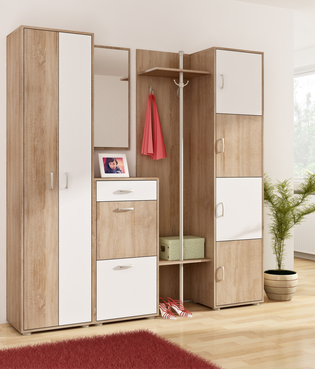Előszoba bútor szett 5 - Világos Sonoma tölgy - Fehér
