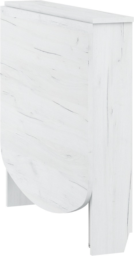 Helytakarékos keskenyre összecsukható falhoz szerelhető 3-személyes étkezőasztal egyoldalas lehajtható kerekített asztallappal