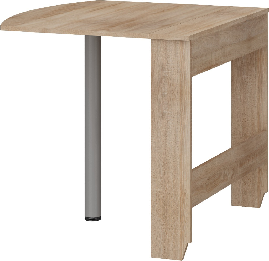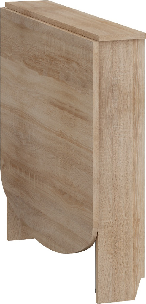 Helytakarékos keskenyre összecsukható falhoz szerelhető 3-személyes étkezőasztal egyoldalas lehajtható kerekített asztallappal