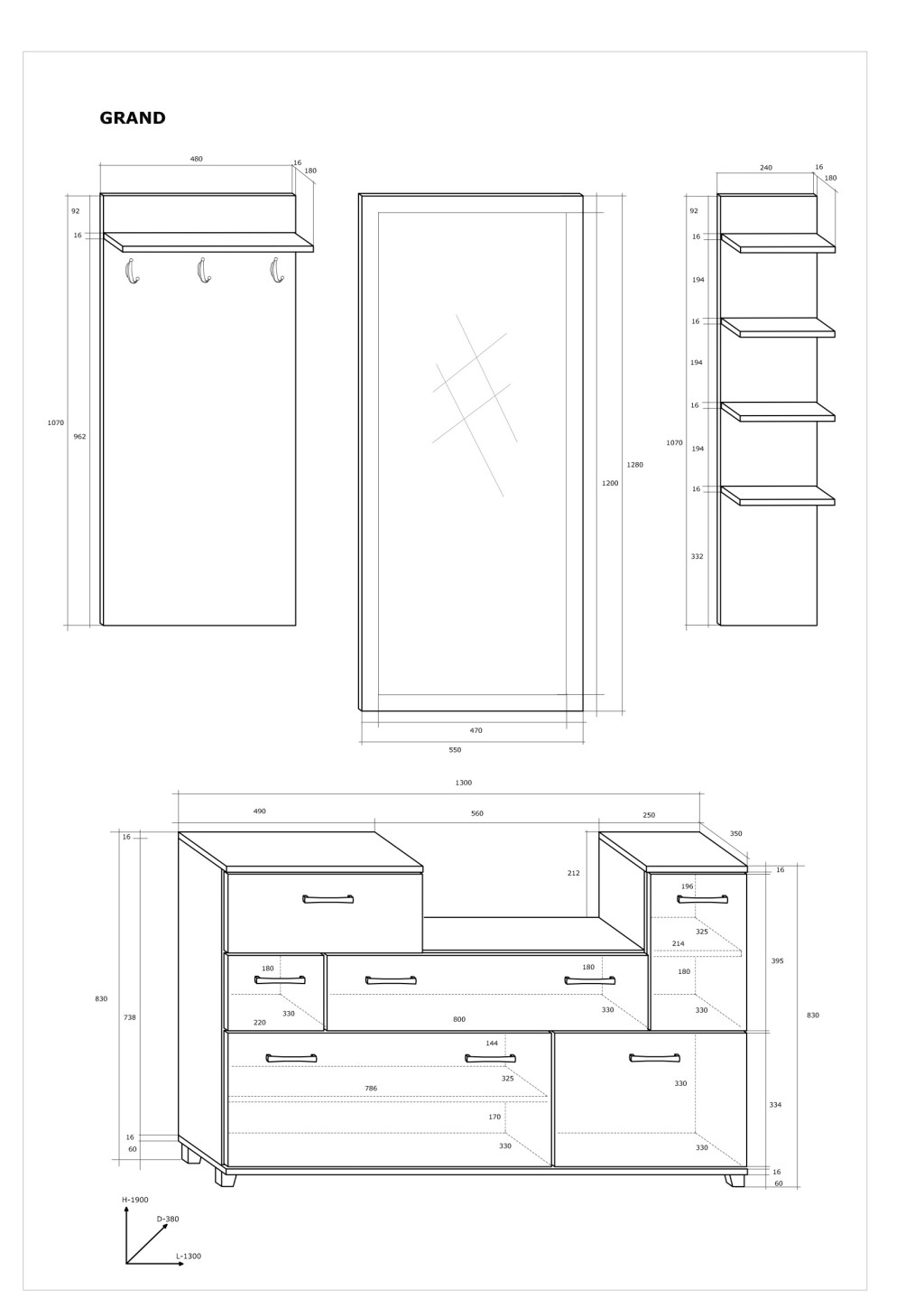 Grand előszoba bútor szett - Fehér tölgy - Arany tölgy