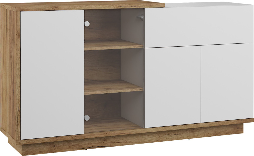 Hybrid komód 3 ajtó 1 fiók 1 üvegajtó - Arany tölgy - Fényes fehér