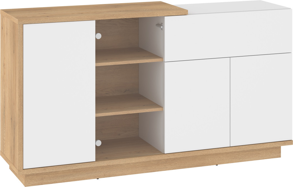 Hybrid komód 3 ajtó 1 fiók 1 üvegajtó - Cremona tölgy - Fényes fehér
