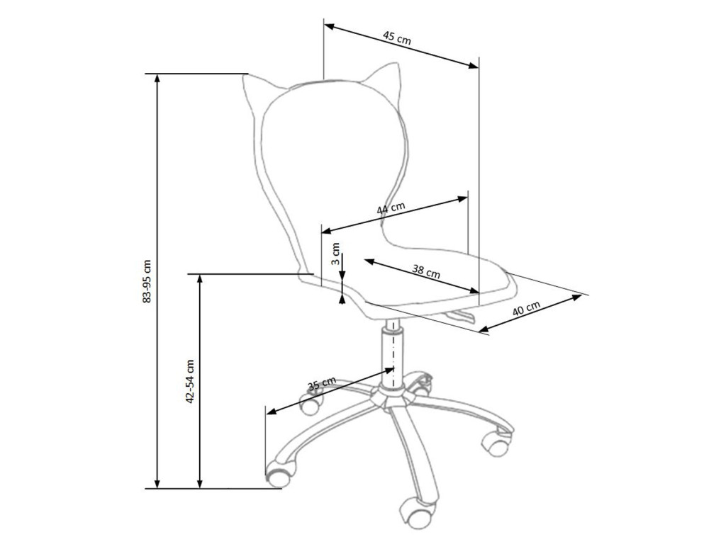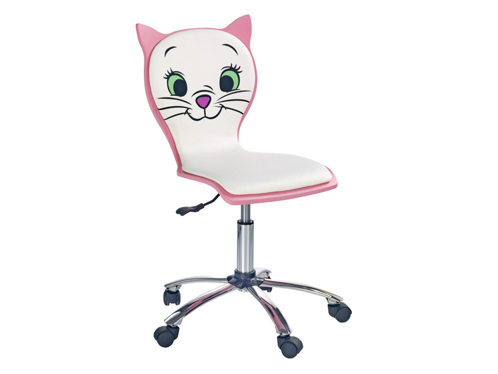 Karfa nélküli, cica mintás, állítható magasságú gyerek forgószék.