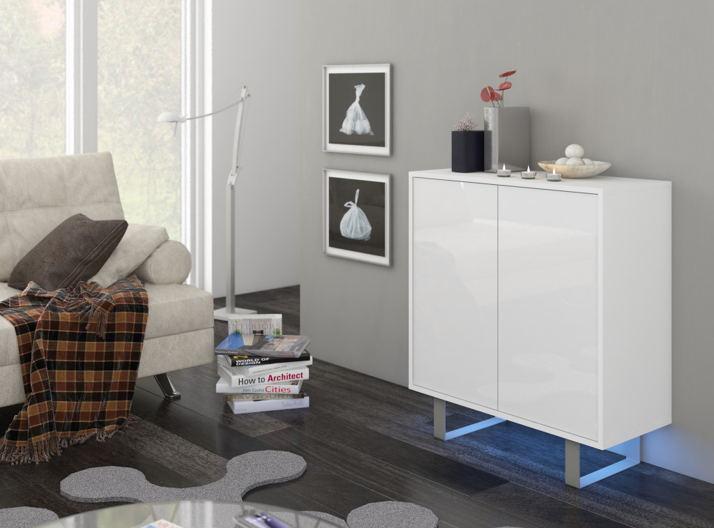 King komód kicsi 2 ajtó - Fehér - Fényes fehér