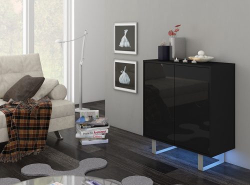 King komód kicsi 2 ajtó - Fekete - Fényes fekete