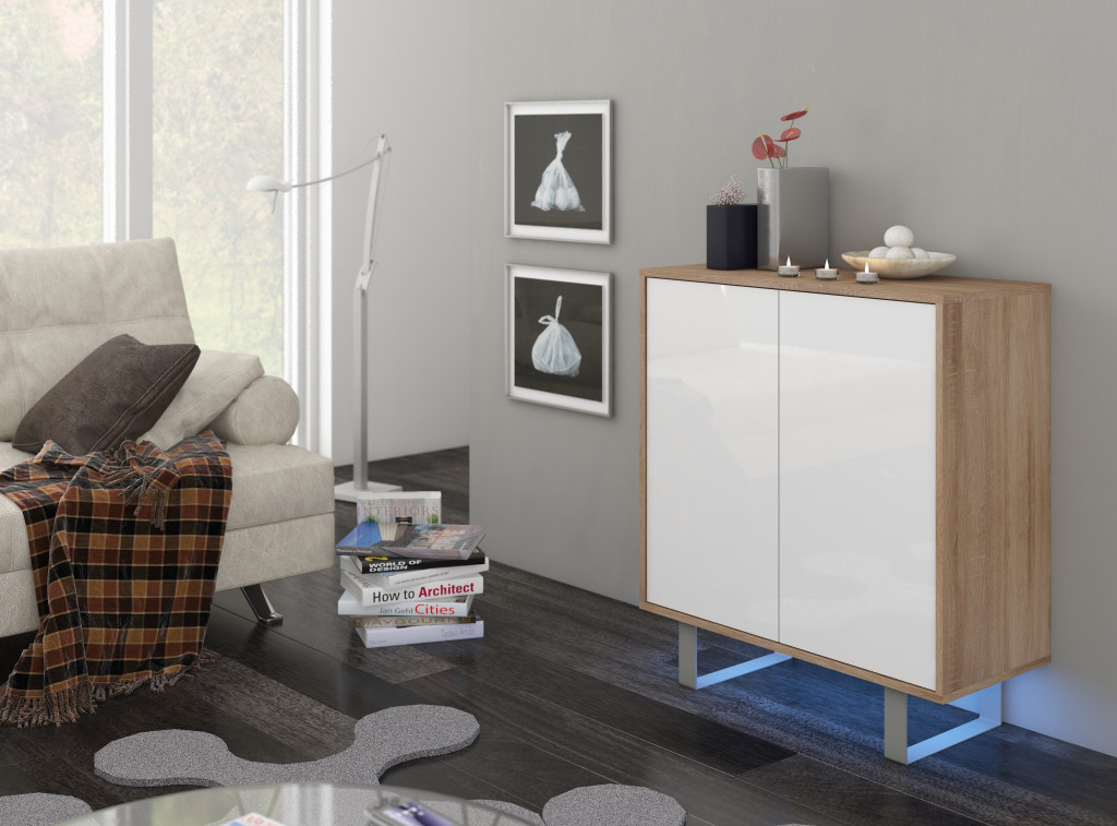 King komód kicsi 2 ajtó - Világos Sonoma tölgy - Fényes fehér