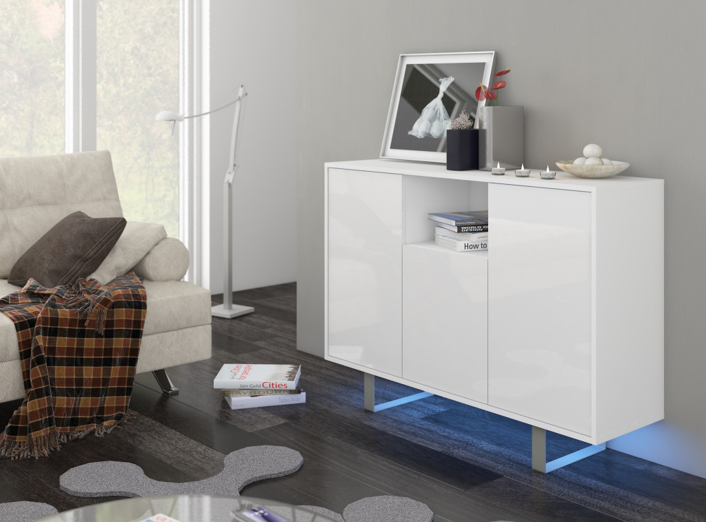 King komód nagy 3 ajtó - Fehér - Fényes fehér