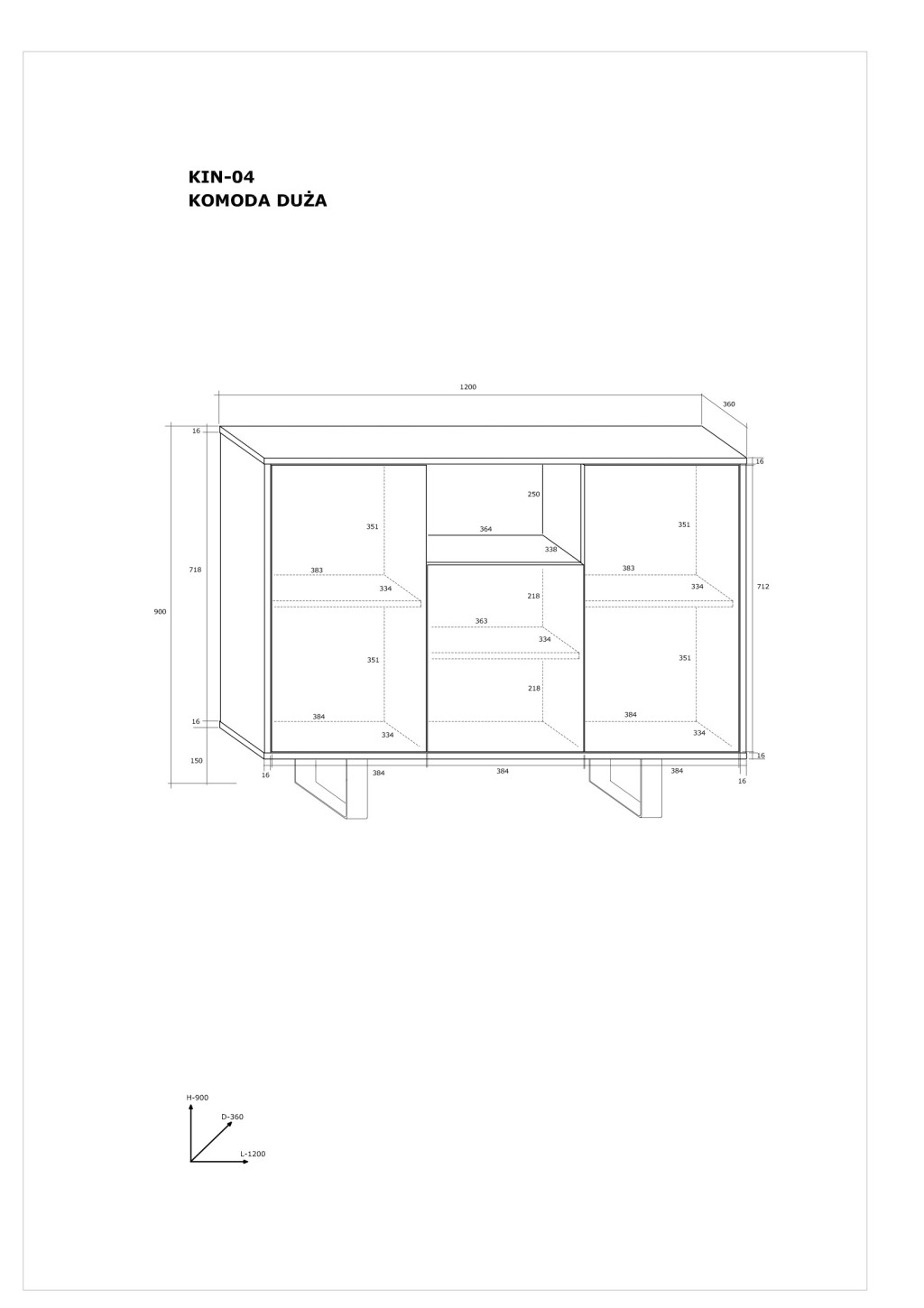 Komód 3 ajtóval az ajtók mögött polcokkal nyitott polccal